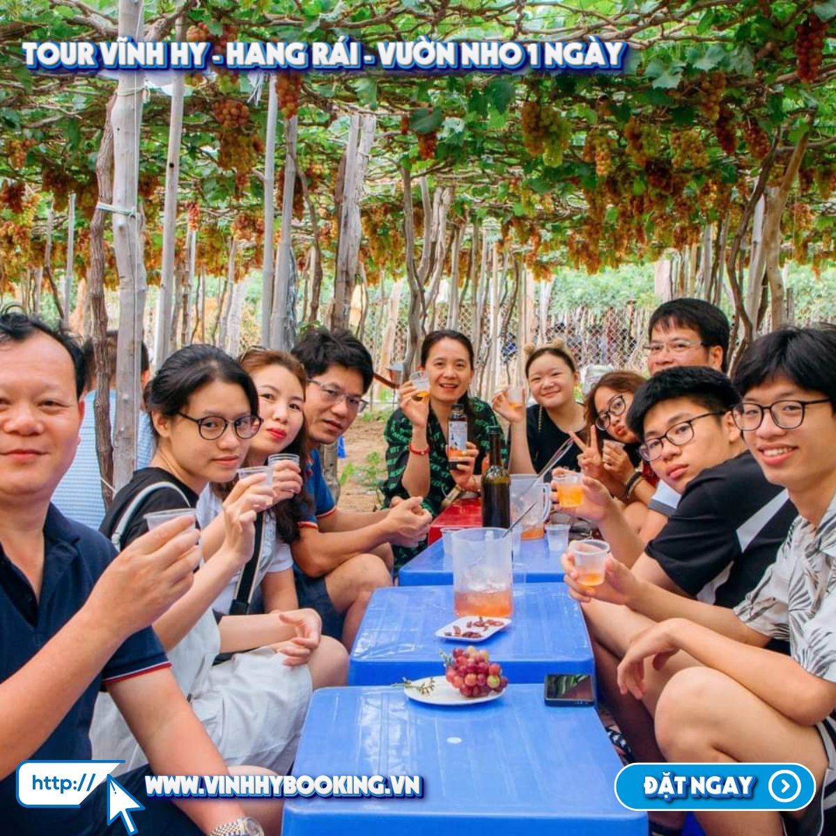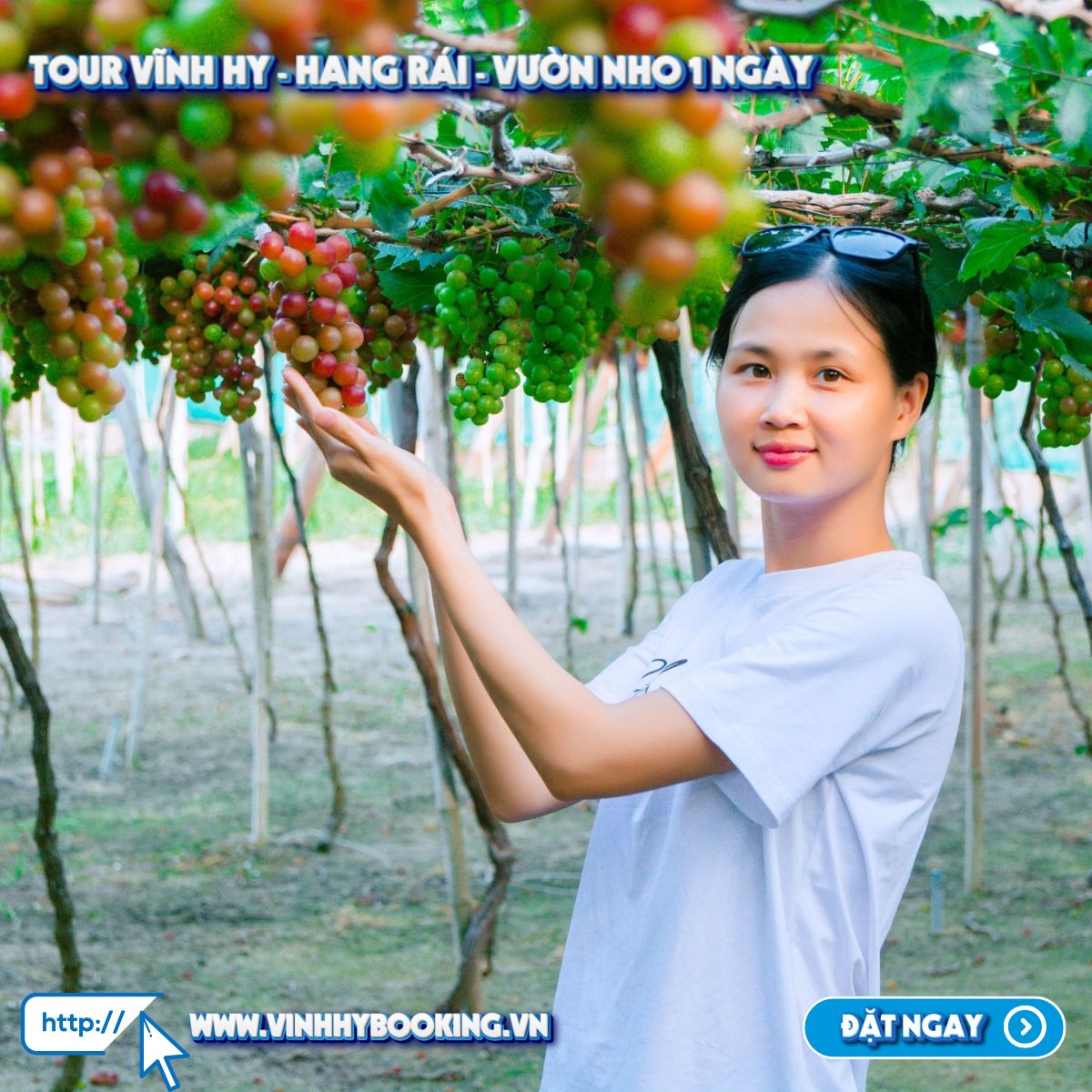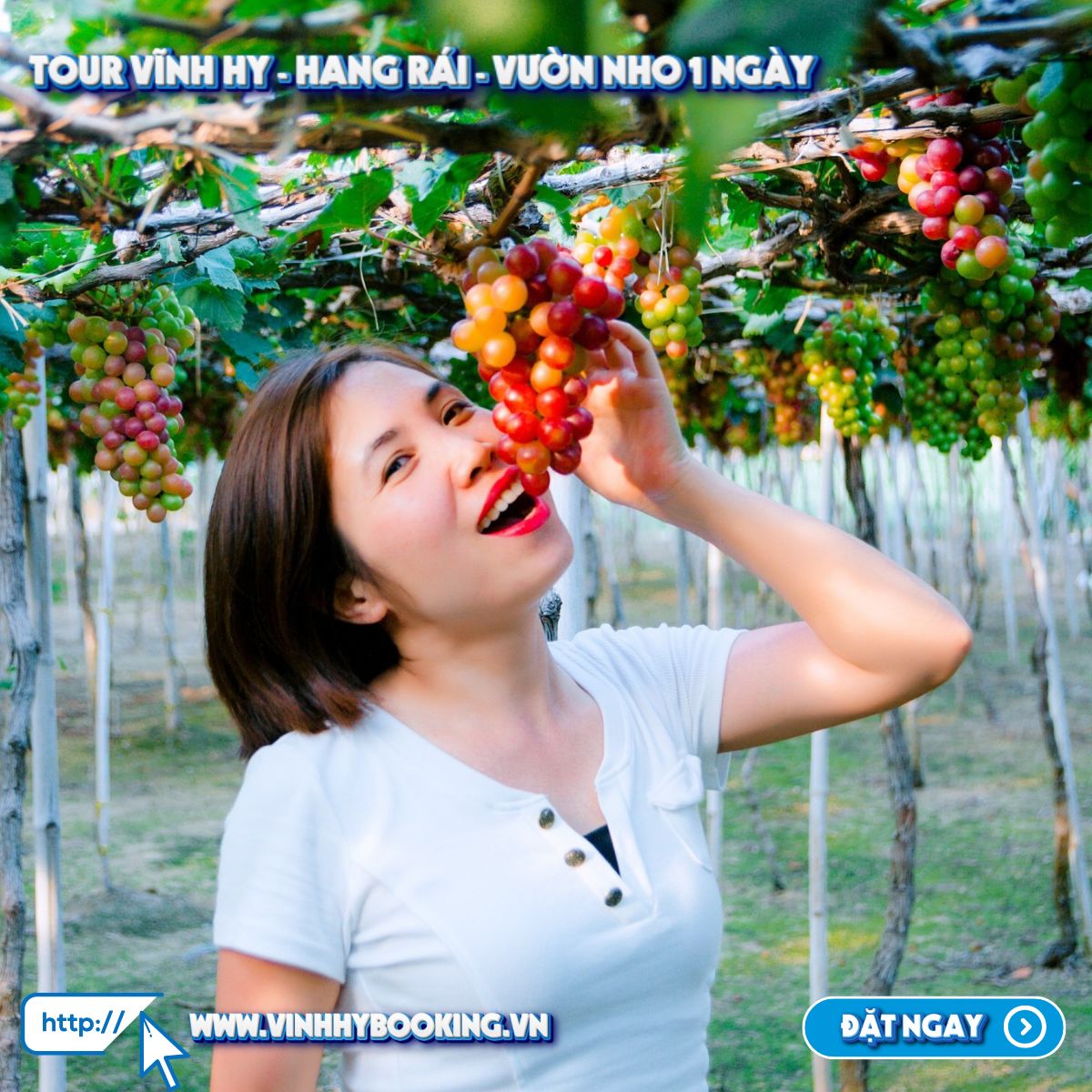 Buổi chiều: Xe đưa đoàn đến tham quan vườn nho Thái An. Tại đây, Quý khách thỏa thích check-in sống ảo, thưởng thức rượu nho, mật nho và các sản phẩm thủ công truyền thống. Trải nghiệm hái nho tại vườn để mua về làm quà cho người thân, bạn bè.