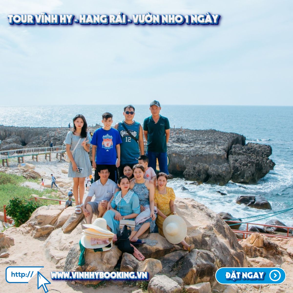 8h00 Đoàn dừng chân tham quan điểm đầu tiên trong lịch trình là KDL Hang Rái. Nơi thu hút du khách thập phương bởi vẻ đẹp hoang sơ và kỳ vĩ. Tại đây, quý khách sẽ được chiêm ngưỡng rạn san hô cổ có niên đại hàng nghìn năm, check-in tại Hòn Con Gà Con, ngắm nhìn “thác nước trên biển – hiện tượng thiên nhiên kỳ thú” hay dạo bước chụp ảnh trên cây cầu gỗ dài 300m uốn quanh sườn núi.