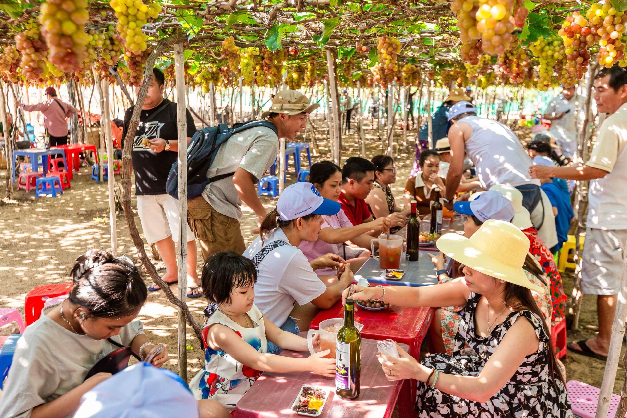 Tham quan vườn nho Hoa Nắng Farm tại làng nho Thái An luôn mang lại những trải nghiệm thú vị. Ngoài chiêm ngưỡng khung cảnh vườn nho xanh mát, Quý du khách đừng quên thưởng thức nho tươi ngay tại vườn và mua sắm những đặc sản trứ danh tại đây. Hãy nhanh tay lưu lại các thông tin để thêm vào cẩm nang cho chuyến du lịch Vĩnh Hy sắp tới nhé.